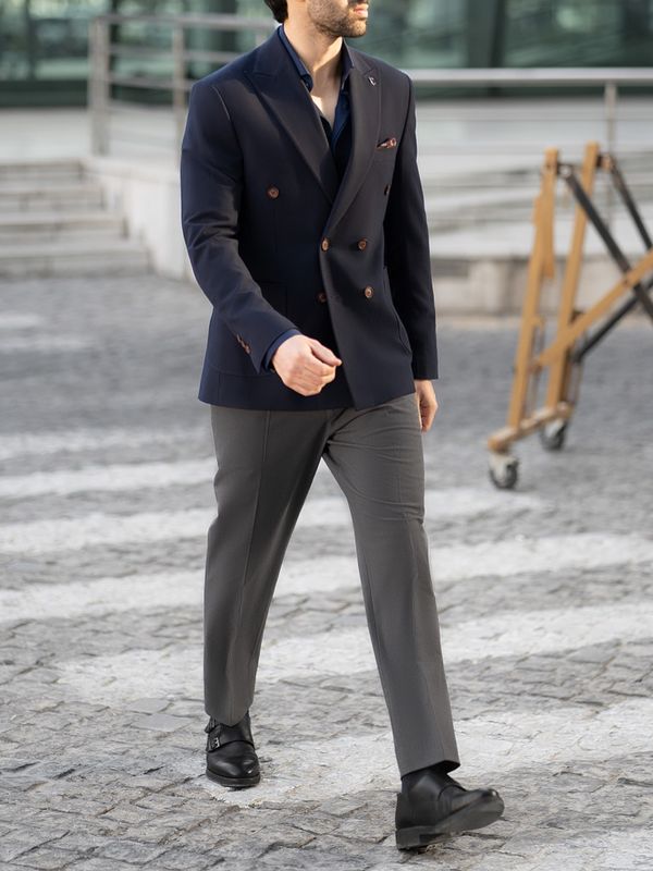 کت دبل برست سرمه ای کد c211
