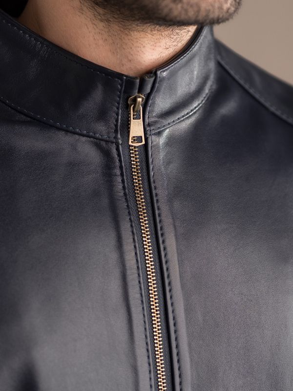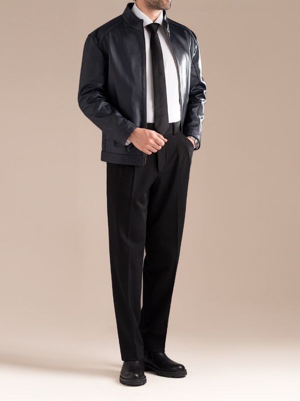 کاپشن چرم طبیعی سرمه ای ساده j195